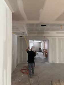 Great strides have been made with the Sigma Nu Addition and Renovation project. Job superintendent Kelly Hockey and crews have finished the sheetrock, now painting and trim are being completed. Flooring is underway as well with wood floors being refinished and new flooring being installed. The rooftop HVAC units were installed late last month.